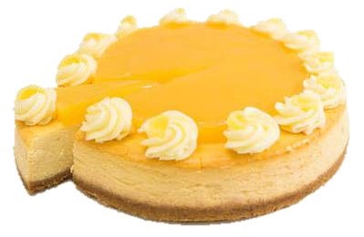 Smooth creamy cheesecake, lemon topping, biscuit base